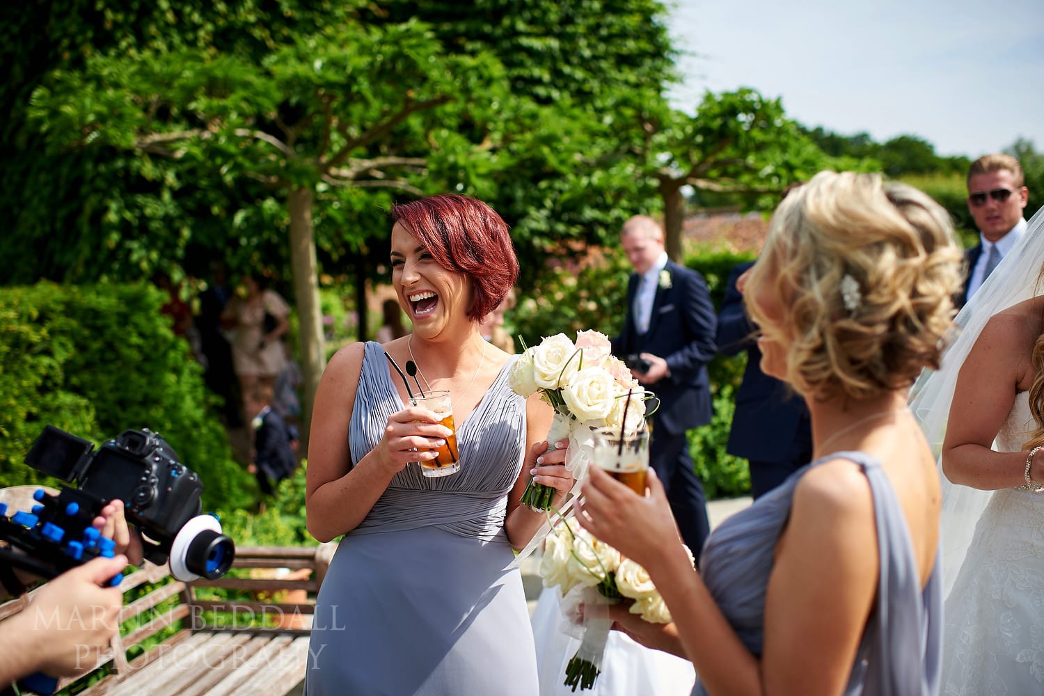 The ceremony complete – Braxted has a routine, before drinks in the walled garden. By now in the warm sunshine. Then into the massive marquee for the meal, speeches and dancing. Plus some very competitive bouquet catching and a champagne shower!