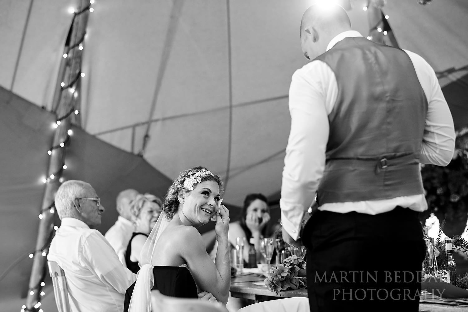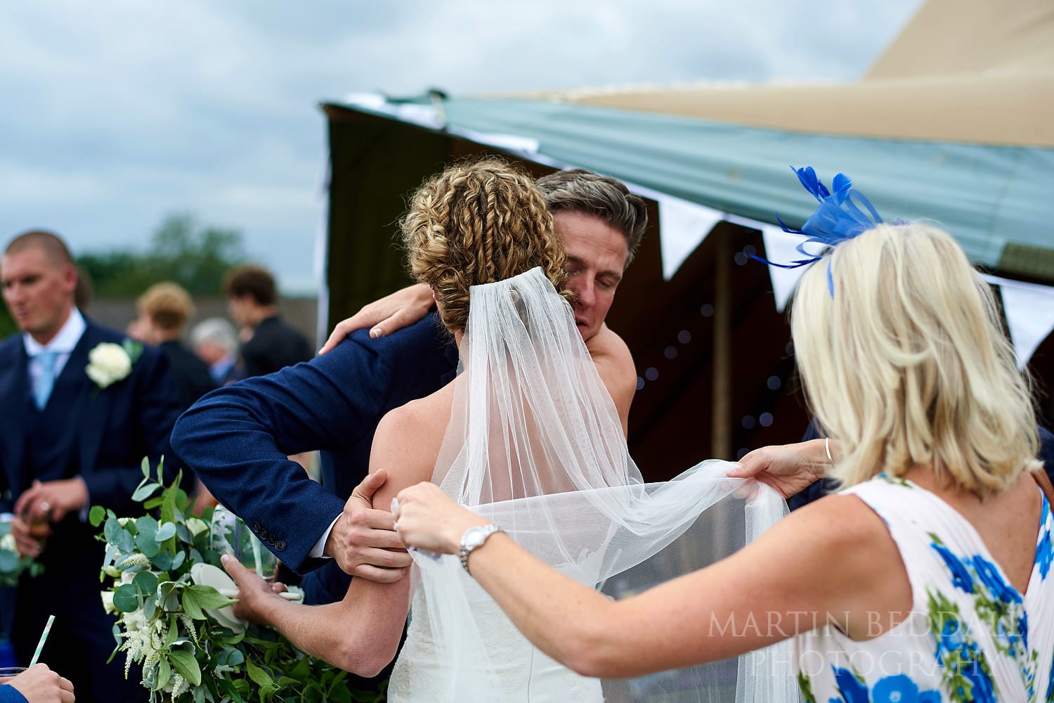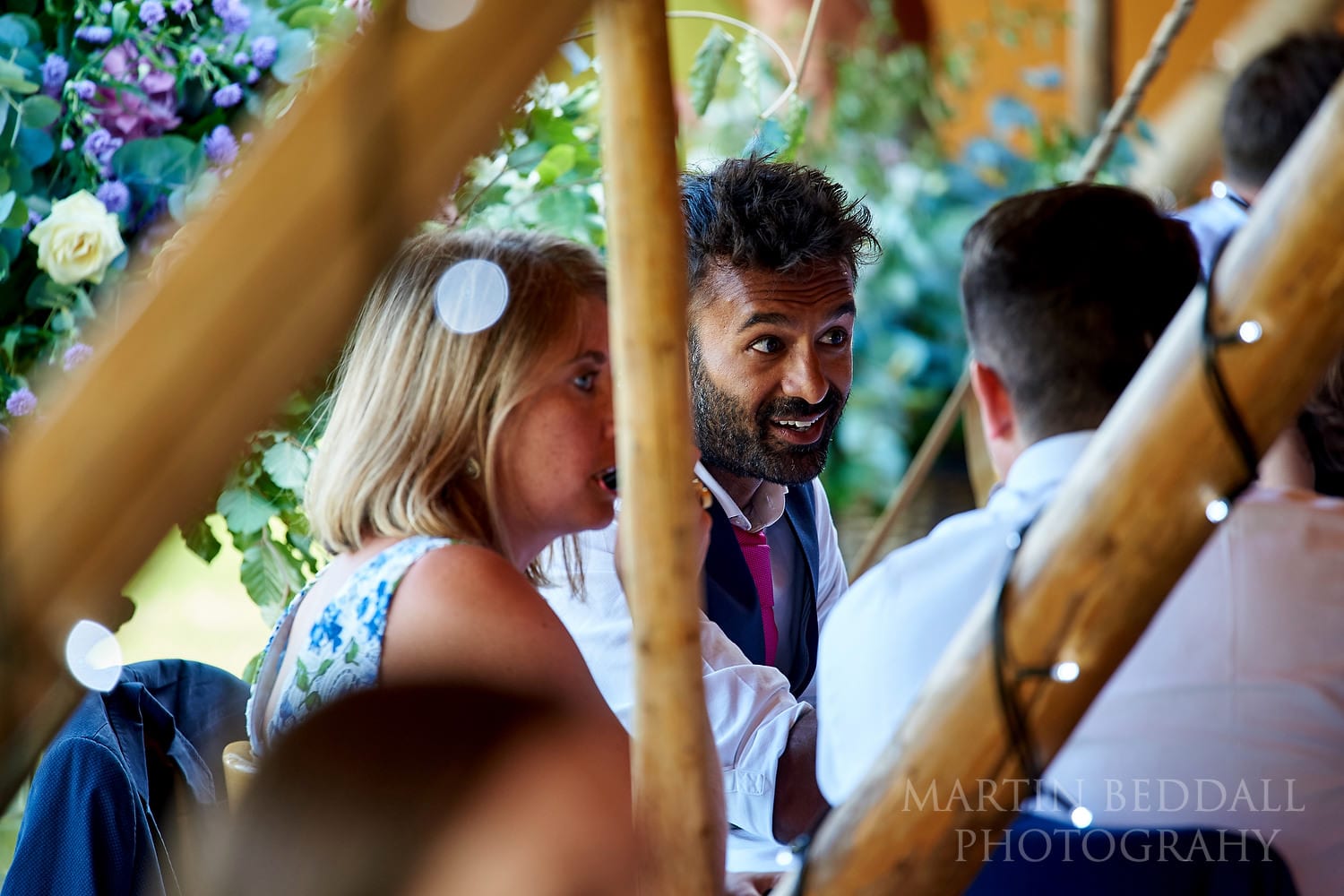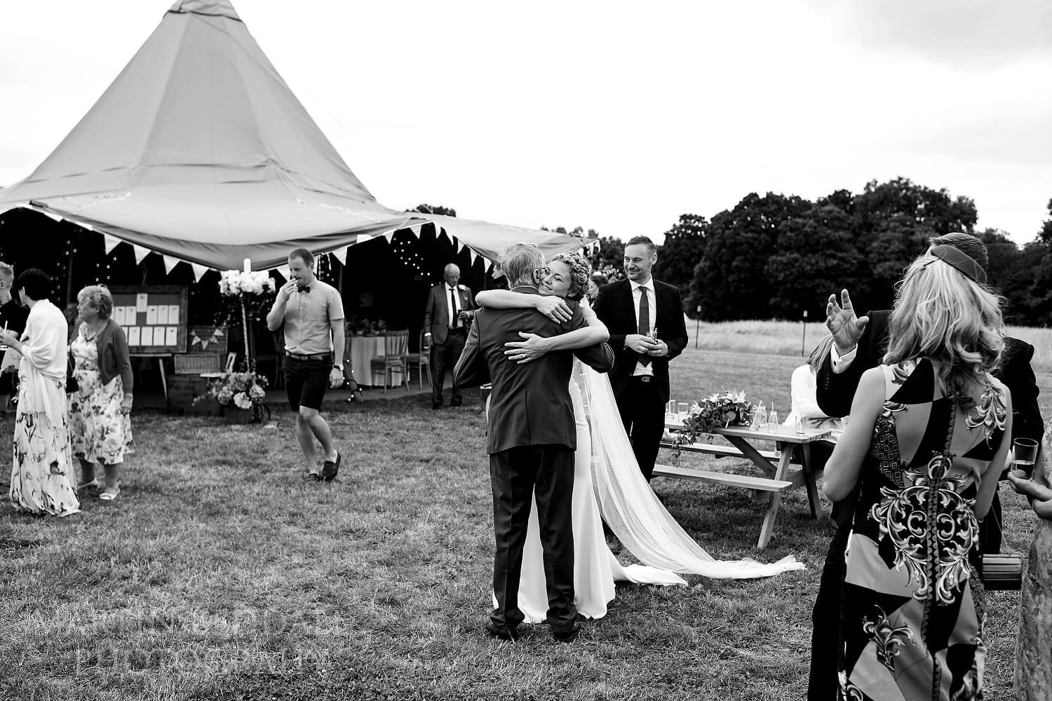 Still a nicer location than many expensive, stuffy hotels… With a big tipi in the same field and guests staying in tents in the lower part of the field, it’s a good blank canvas for an English summer wedding. All you need is decent summer weather. The Sun came – as it often does – just as everyone heads into the wedding meal. But that was later…