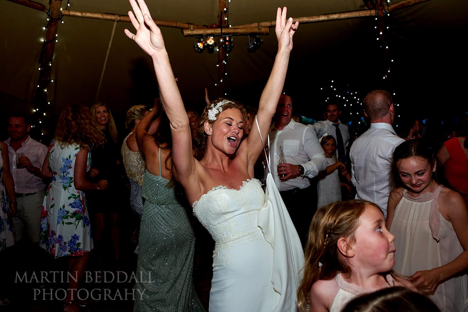 Across at Chafford Park, Adam was waiting for the day to kick-off, as family and friends gathered. A ceremony and a wonderful dry bit of humour from Katie’s father, at the start, to help everyone relax. A confetti run down the side of the barn before Katie and Adam led everyone up the hill to drinks outside the large tipi. Traditional wedding speeches, with mentions of ‘tinder’ and ‘sex tourism in Thailand’ – the usual stuff! 😉 The sun even held on for some sunset portraits in the long grass. But not before a young posse arrived, excited by watching the effects of alcohol on some of the adults… A wedding can be educating!