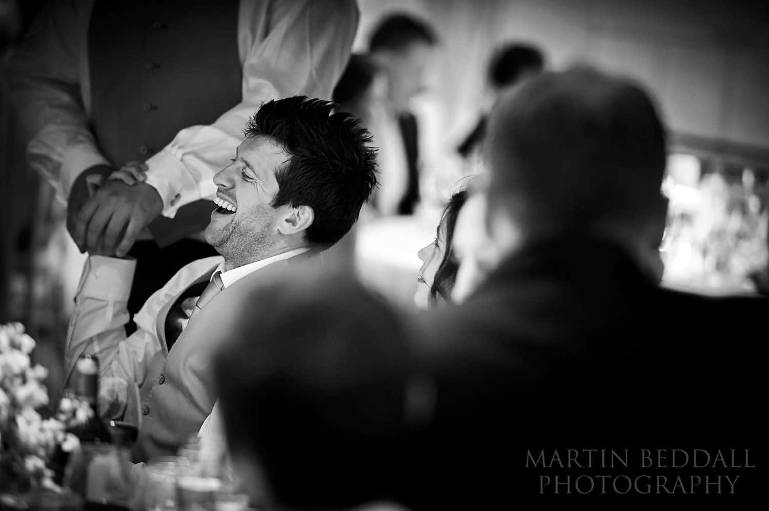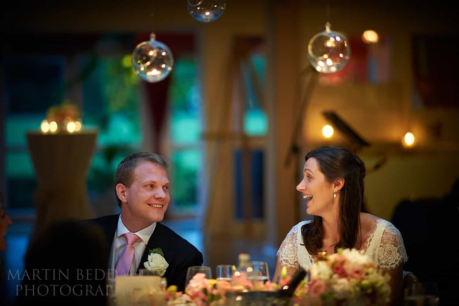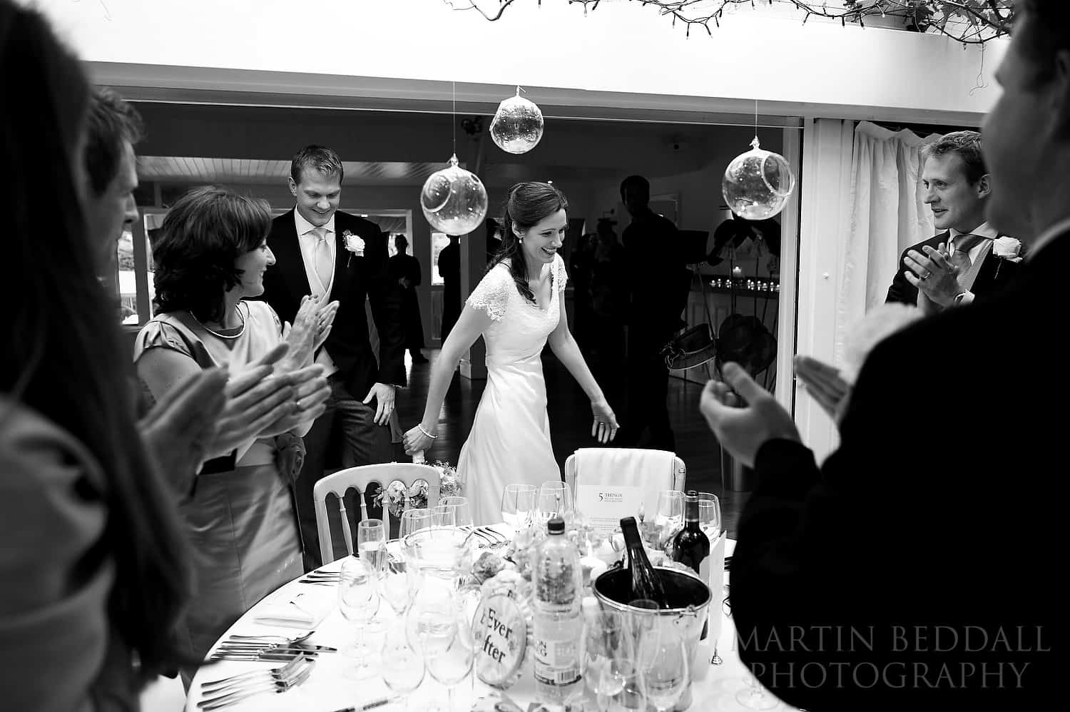 Some quick couple portraits in the grounds, then the couple were announced into dinner, in the clubhouse. Food, drink and speeches to follow, in a cosy candlelit room.