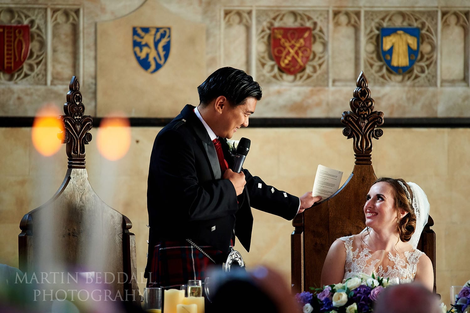 Drinks followed in the courtyard. One half in bright sunshine, the other in the shade. Meanwhile, Poles Hall was turned around for the wedding breakfast. Plus the speeches.