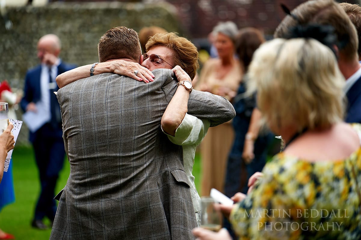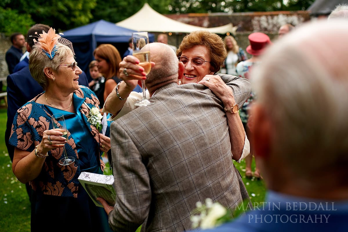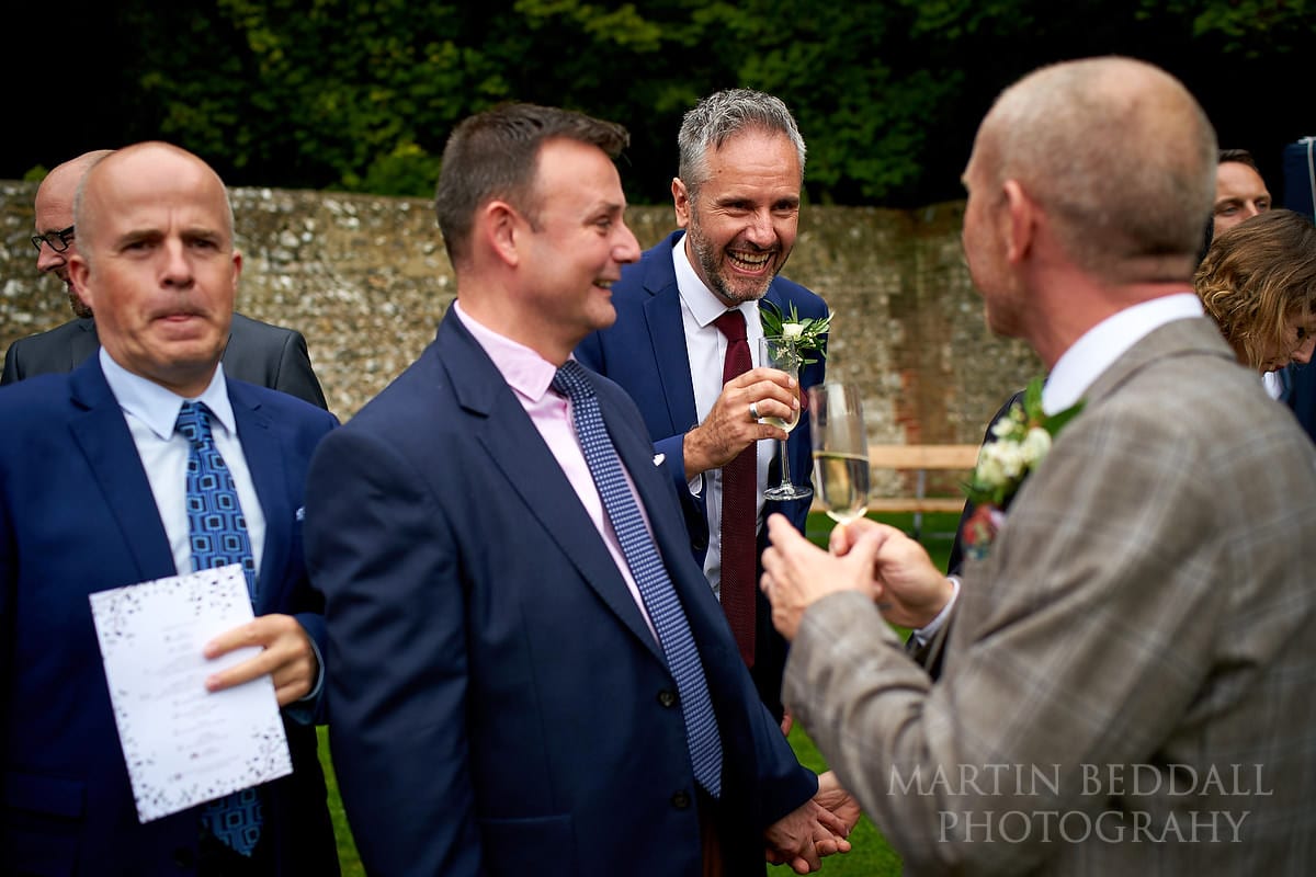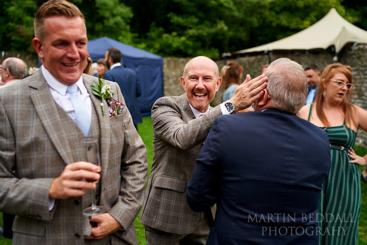 Coverage kicks off, at The Lamb in Angmering, just a few minute’s drive from Cissbury. A bedroom and a ‘dressing room’, where Gary and Jeff could hang out with friends before they helped them get dressed and ready. Then a taxi ride across to meet the registrar, as the guests gathered in the ceremony barn. A few tears already and a few more, from Gary, as they got out of the car and walked towards the barn. They entered the barn together. Greeted by family and friends, for an emotional wedding ceremony. Vows made, rings exchanged – they left the barn and the guests gathered on the grass, ready for the confetti run! Drinks and canapes to follow. Plus the visit of their dog, Berkley.